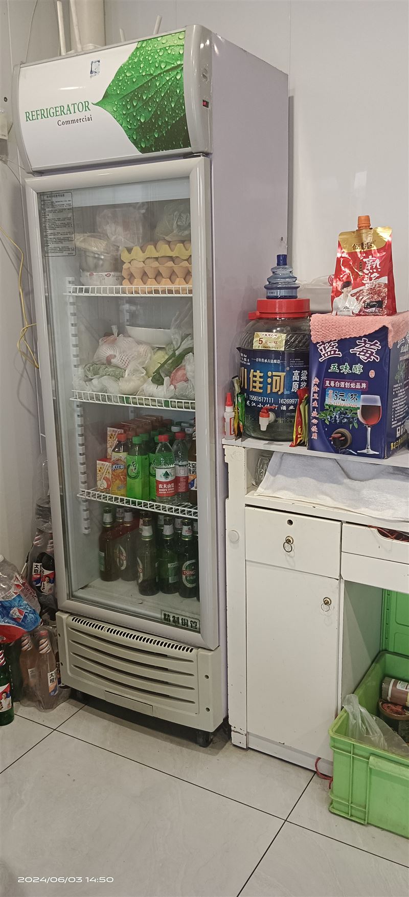 装修了,大冰柜,展柜,烤炉,桌子,凳子,保温桶,酱汤罐