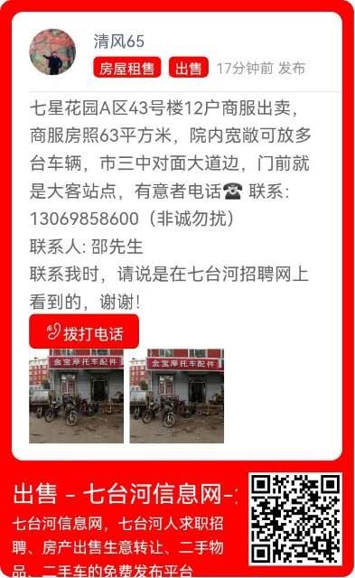 联系我时,请说明在七台河信息网看到的,谢谢!