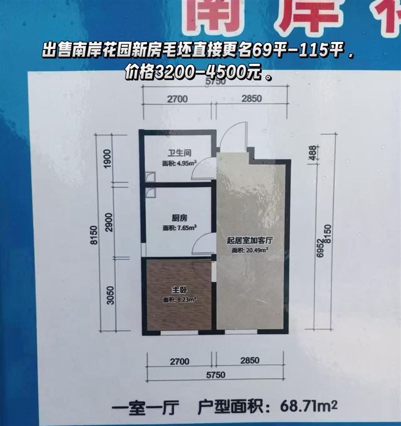 出售南岸花园新房毛坯直接更名1室69平,73平,2室87平。93平,100平,3室114平。价格3200-4500直接。