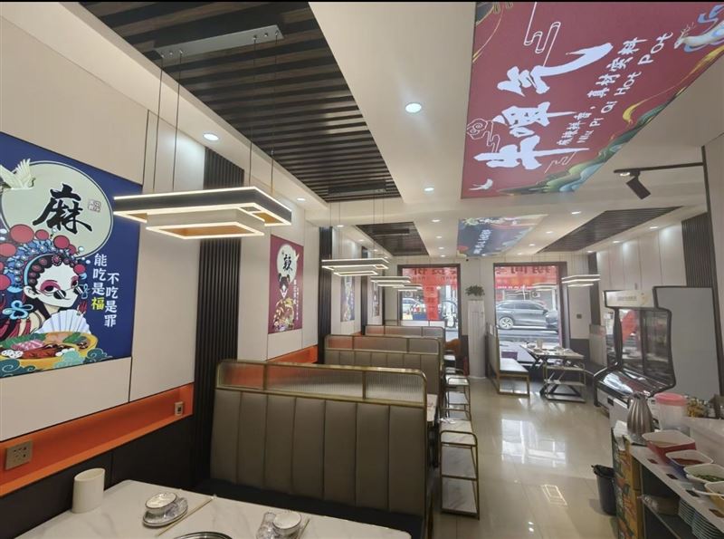 家中有急事,锦绣家园牛啤气火锅外兑,楼上楼下263平,一楼七个卡台,二楼三个大中小包间四个小卡台,室内装修宽敞明亮,国潮风格,设备齐全,接手可盈利,有稳定客源,